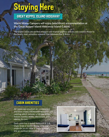 Included are transport from Rockhampton airport, ferry transfers to and from Great Keppel Island, 4 nights accommodation, all meals from Monday dinner til Friday lunch, daily stretching, guided swims, registration, insurance, coaching, water safety, and awesome merchandise including shirt, towel, cap, and more!